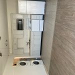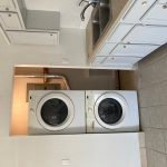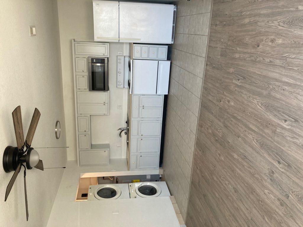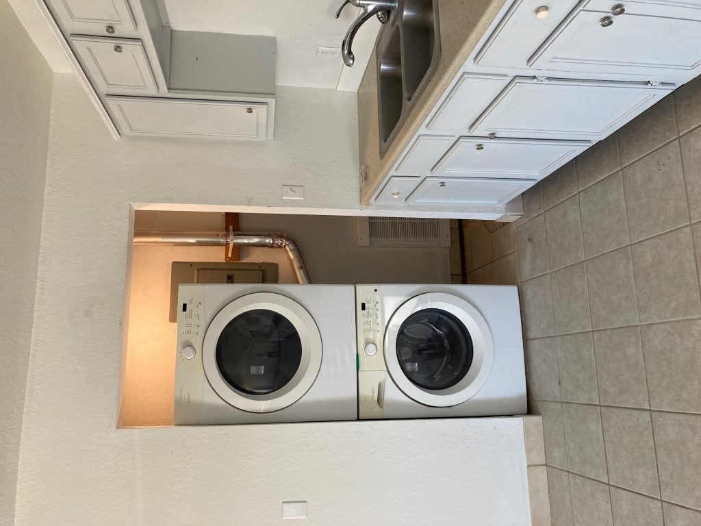 No steps. New windows, floor, trim & bathtub marble surround & vanity. Refrigerator, stove, microwave & washer/dryer included. Water
